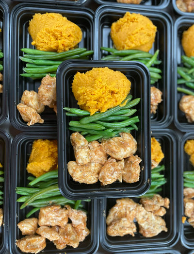 Meal 5: Chipotle chicken with mashed sweet potatoes & green beans